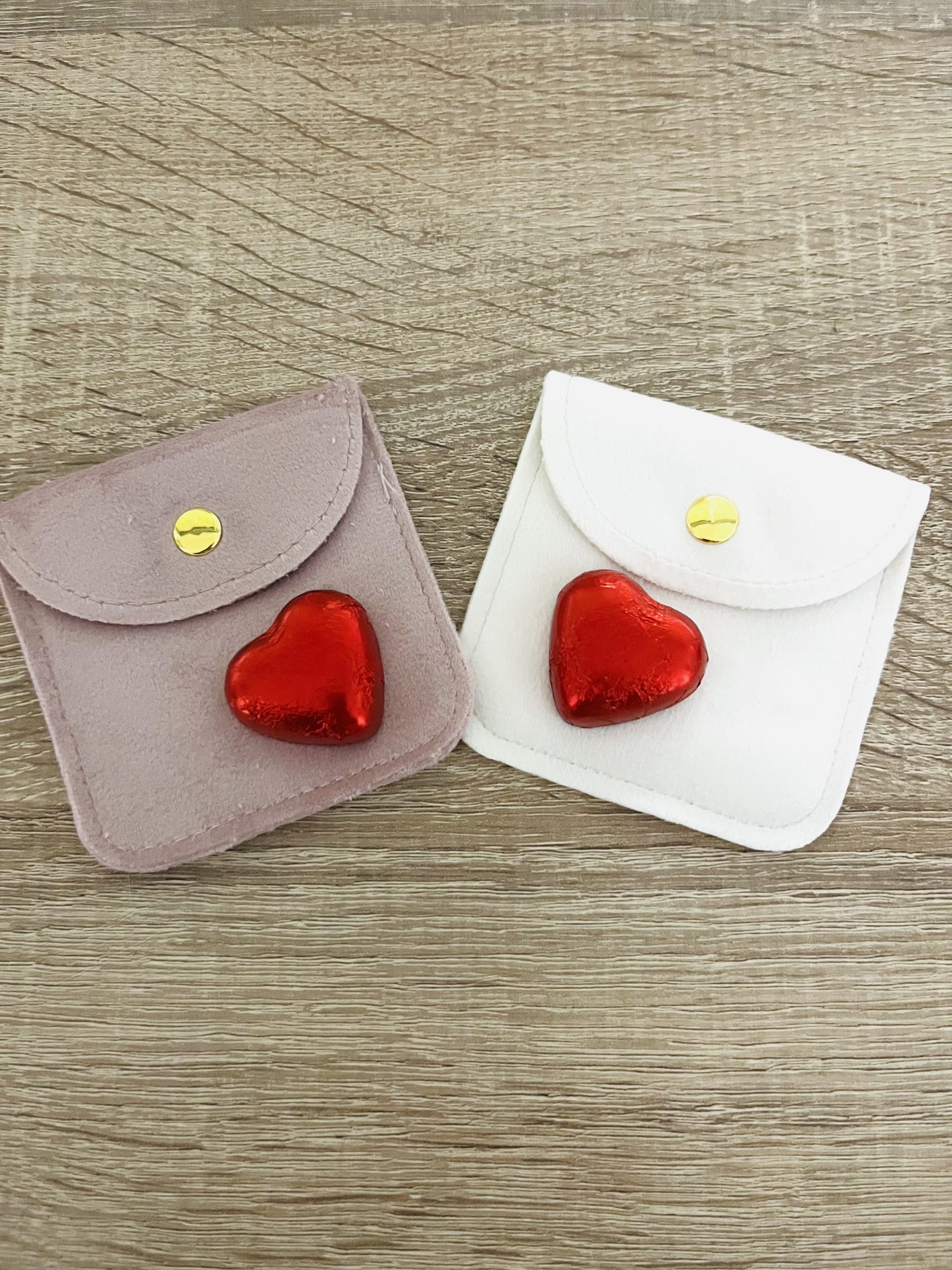 Monedero de terciopelo con bombón en forma de corazón